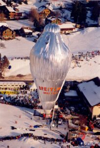 Nous aimons les défis : défis sportifs comme la traversé de la manche sur une des plus grande distance ou défis techniques comme la création de la plus grosse montgolfière du monde avec 32 passagers et 2 pilotes en 2012 ou comme la création de formes spéciales permettant de faire voler une réplique d’à peu près tout ce que nous pouvons imaginer…