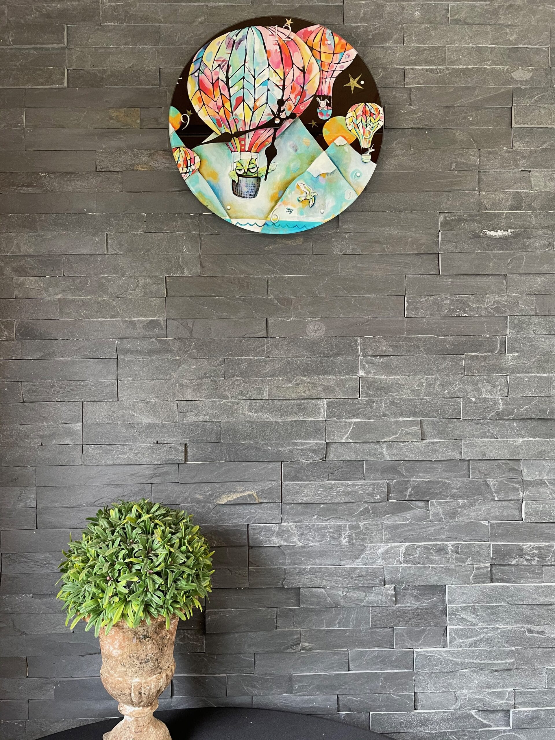 Horloge en verre, motif « montgolfières »